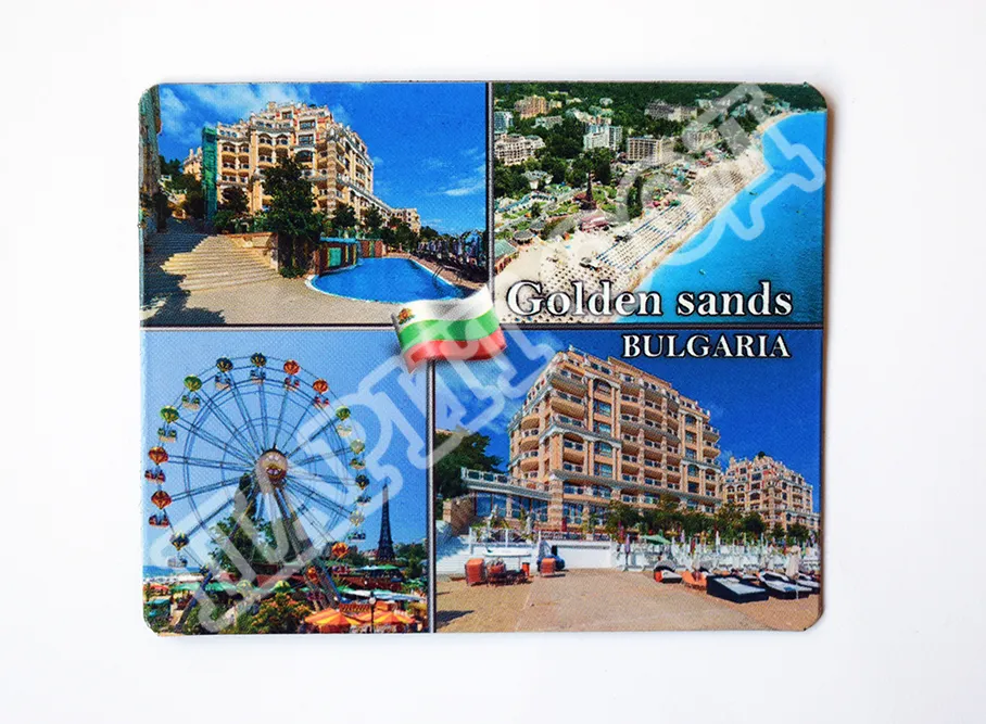 Сувенирен магнит със снимки от Златни пясъци. Предлага се опакован в щендерен целофан.