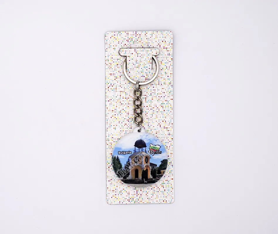Метален ключодържател-отварачка със снимка. Предлага се опакован в щендерен целофан.