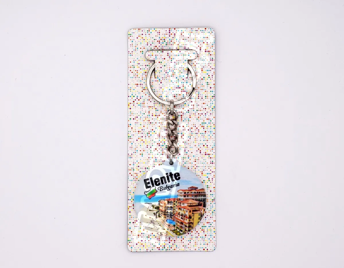Метален ключодържател – отварачка със снимка от ваканционно селище Елените. Предлага се опакован в щендерен целофан.