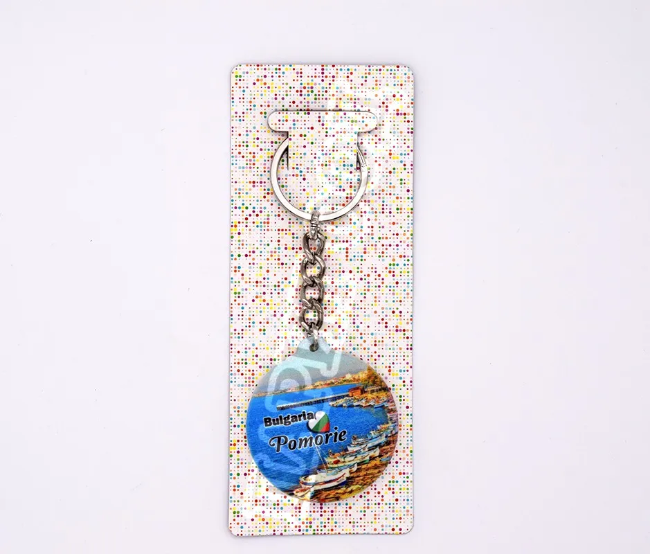 Метален ключодържател-отварачка със снимка от Поморие. Предлага се опакован в щендерен целофан.