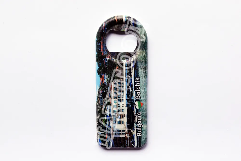 Сувенирна магнитна отварачка със снимка от Балчик и надпис Балчик, България. Предлага се опакована в щендерен целофан.