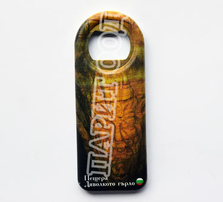 Сувенирна магнитна отварачка със снимка от пещера “Дяволско гърло“ – с.Триград. Предлага се опакована в щендерен целофан.