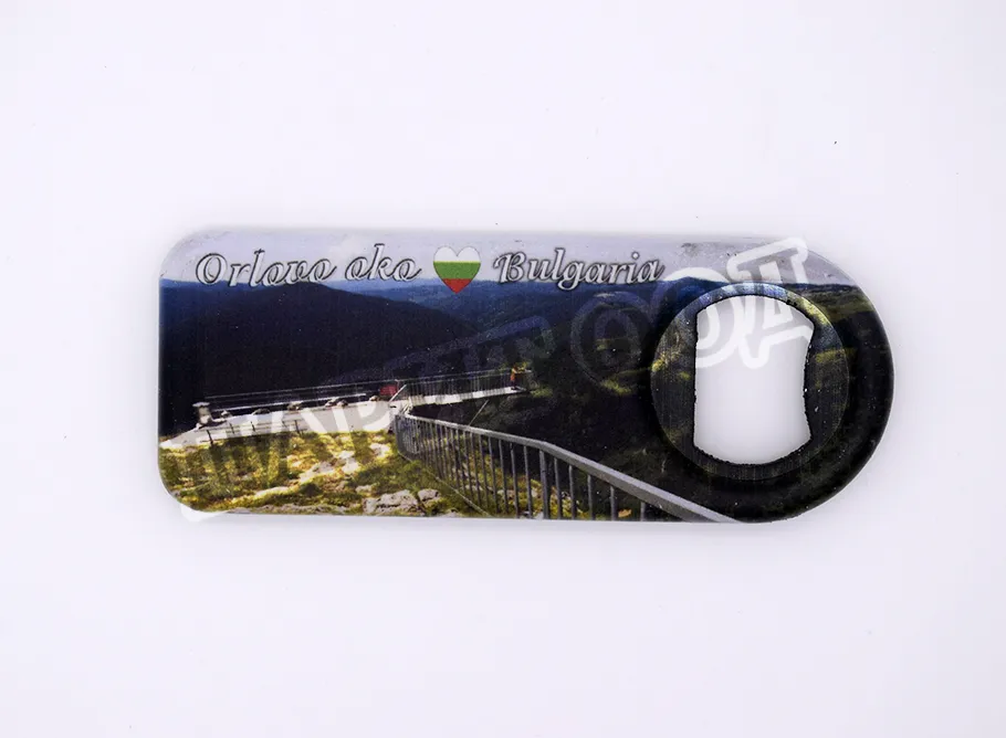 Сувенирна магнитна отварачка със снимка от панорамна площадка ,, Орлово око“, с. Ягодина. Предлага се опакована в щендерен целофан.