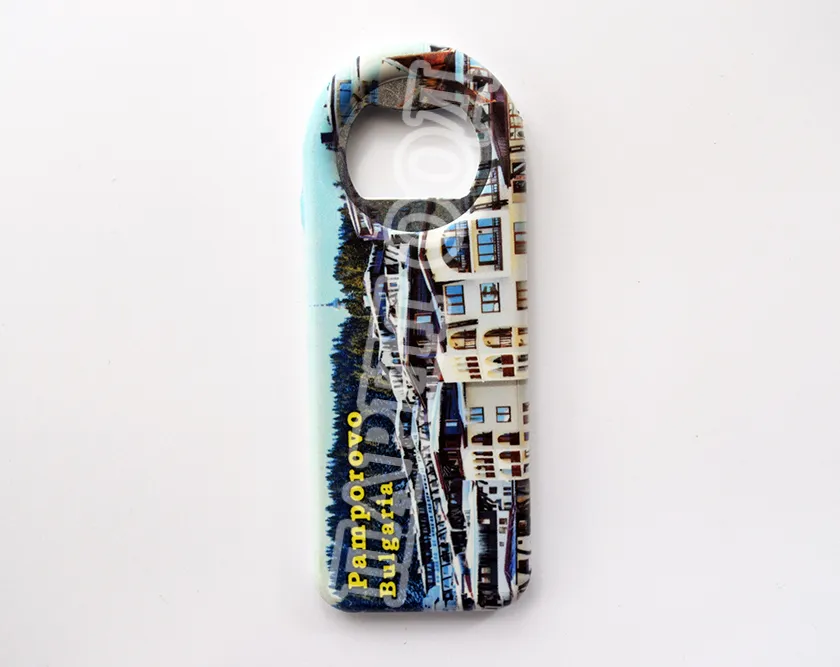 Сувенирна магнитна отварачка със снимка от Пампорово и надпис Пампорово, България. Предлага се опакована в щендерен целофан.