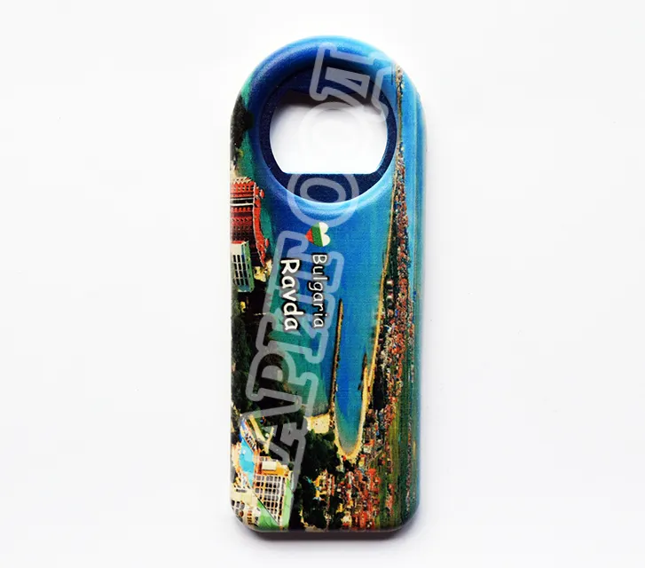 Сувенирна магнитна отварачка със снимка от Равда и надпис Равда, България. Предлага се опакована в щендерен целофан.