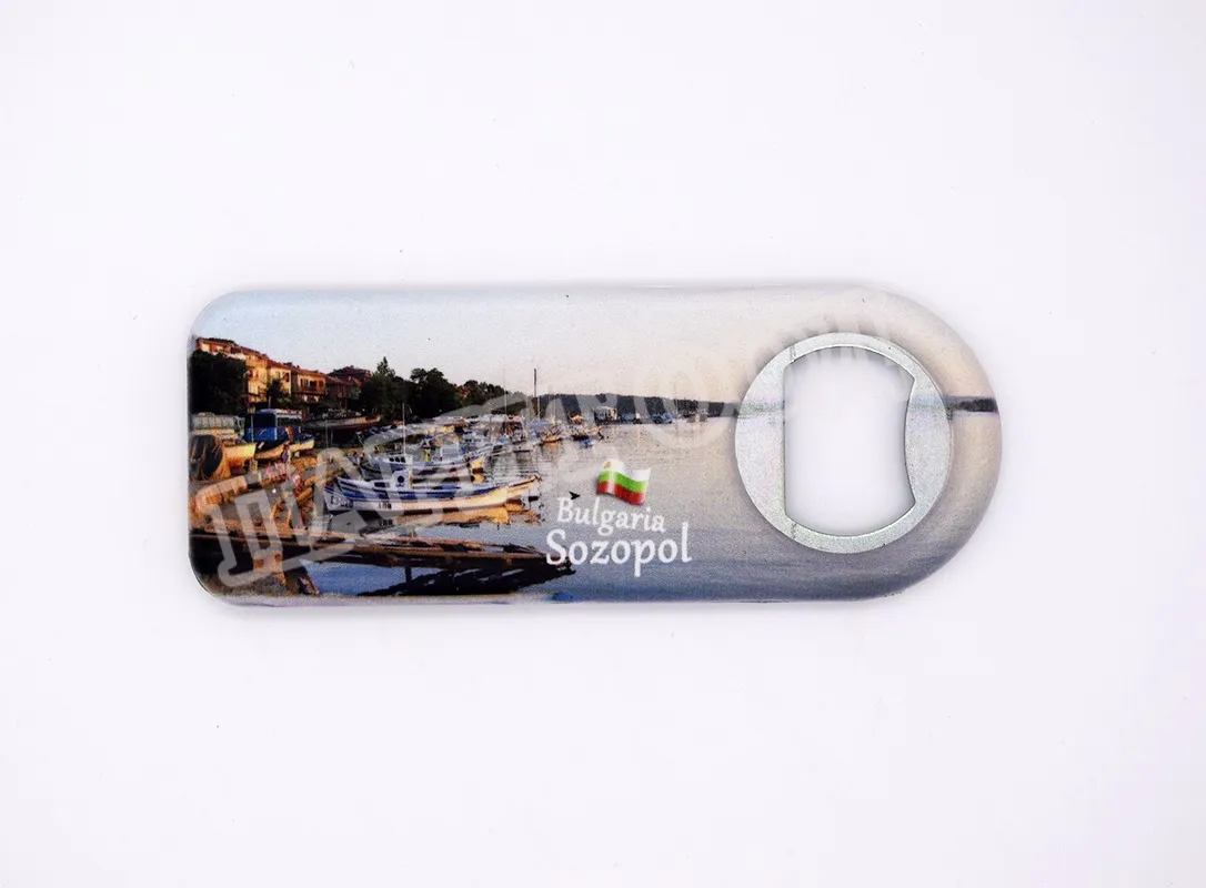Сувенирна магнитна отварачка със снимка Созопол. Предлага се опакована в щендерен целофан.