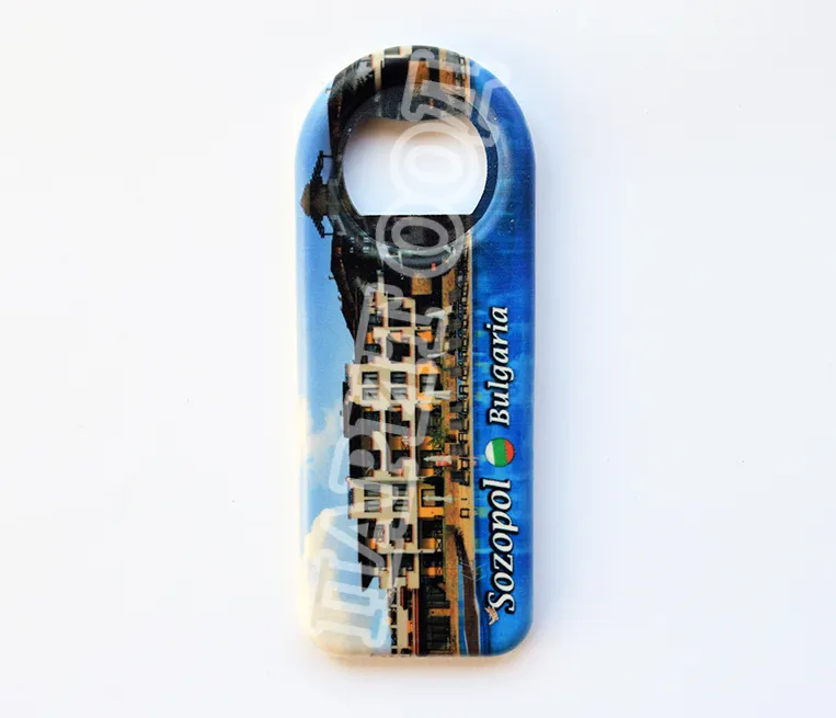 Сувенирна магнитна отварачка със снимка от Созопол и надпис Созопол, България. Предлага се опакована в щендерен целофан.