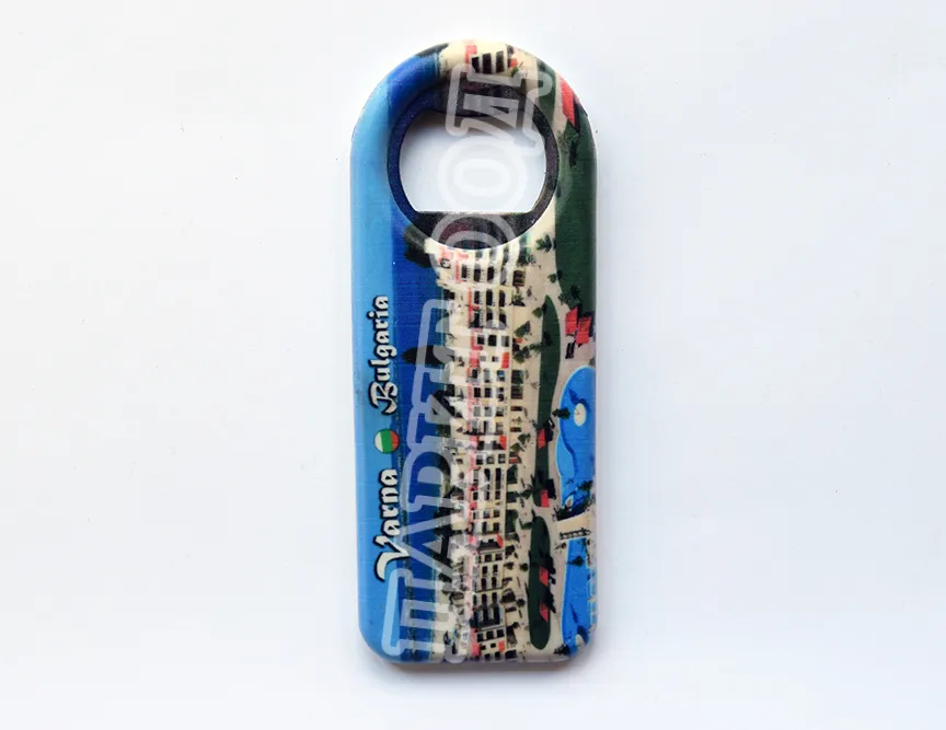 Сувенирна магнитна отварачка със снимка от Варна и надпис Варна, България. Предлага се опакована в щендерен целофан.