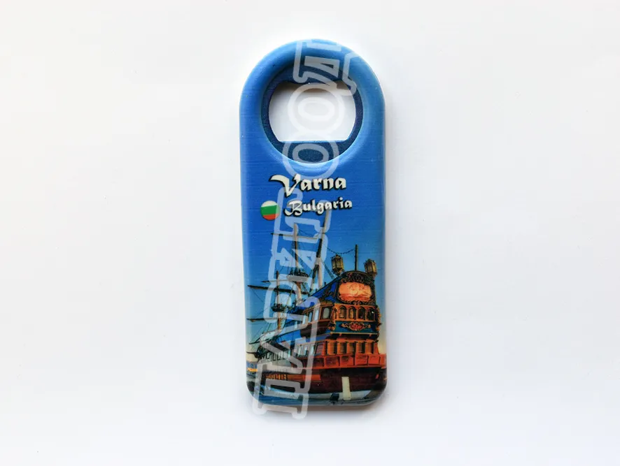 Сувенирна магнитна отварачка със снимка от Варна и надпис Варна, България. Предлага се опакована в щендерен целофан.