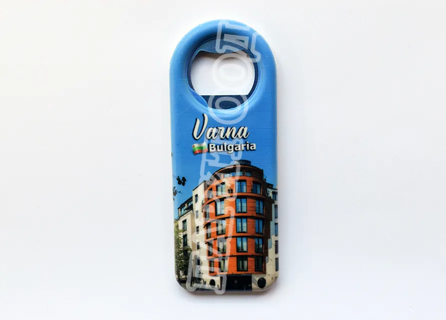 Сувенирна магнитна отварачка със снимка от Варна и надпис Варна, България. Предлага се опакована в щендерен целофан.