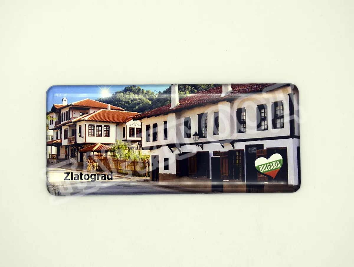 Сувенирен магнит с епоксидно покритие и снимка от Златоград. Предлага се опакован в щендерен целофан.