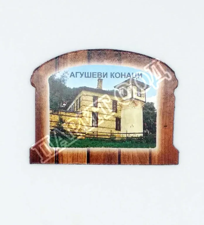 Сувенирен магнит със снимки от Агушеви конаци. Предлага се опакован в щендерен целофан.