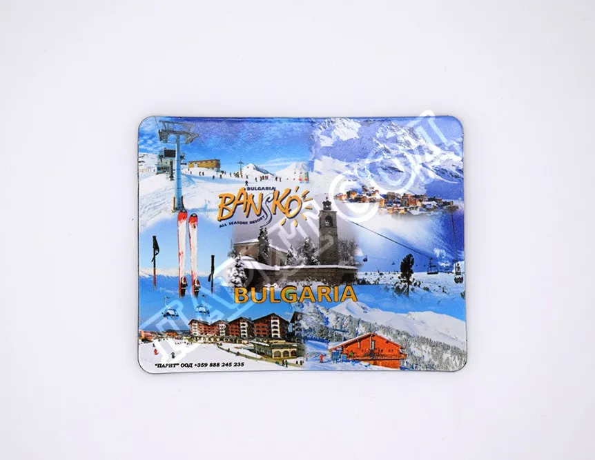 Сувенирен магнит със снимки от Банско. Предлага се опакован в щендерен целофан.