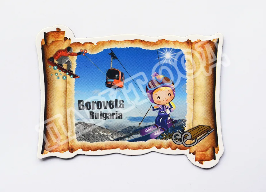 Сувенирен магнит със снимка от Боровец и надпис Боровец, България. Предлага се опакован в щендерен целофан.