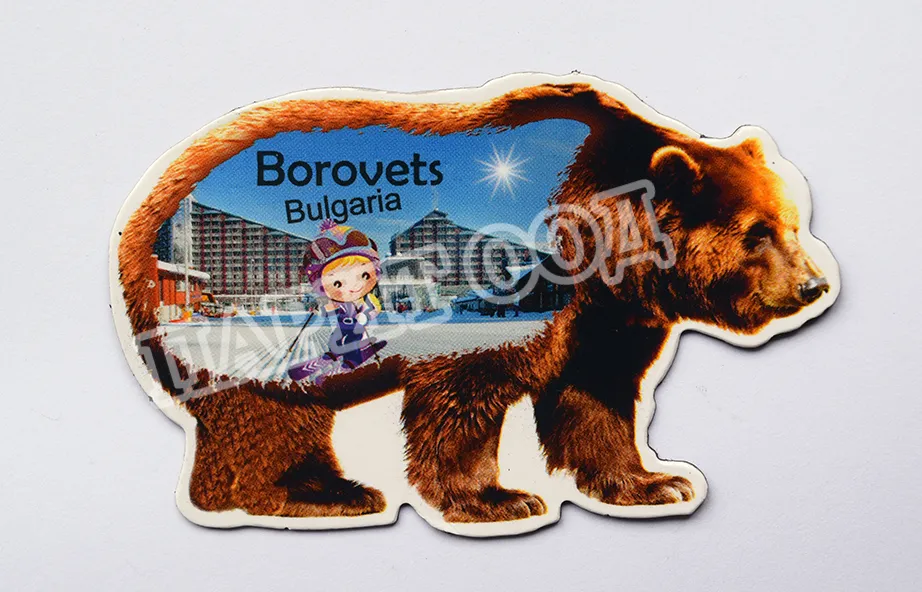 Сувенирен магнит със снимка от Боровец и надпис Боровец, България. Предлага се опакован в щендерен целофан.