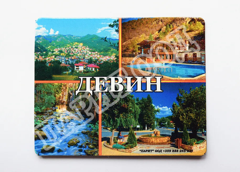 Сувенирен магнит със снимки от Девин. Предлага се опакован в щендерен целофан.