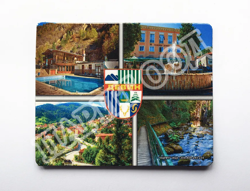 Сувенирен магнит със снимки от Девин. Предлага се опакован в щендерен целофан.