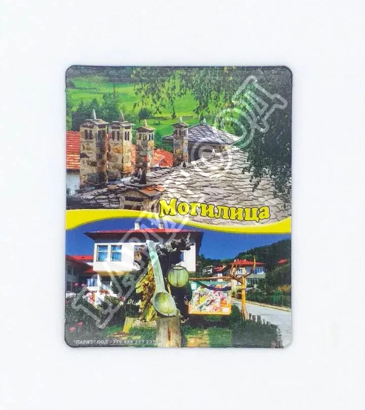 Сувенирен магнит със снимки от с. Могилица. Предлага се опакован в щендерен целофан.