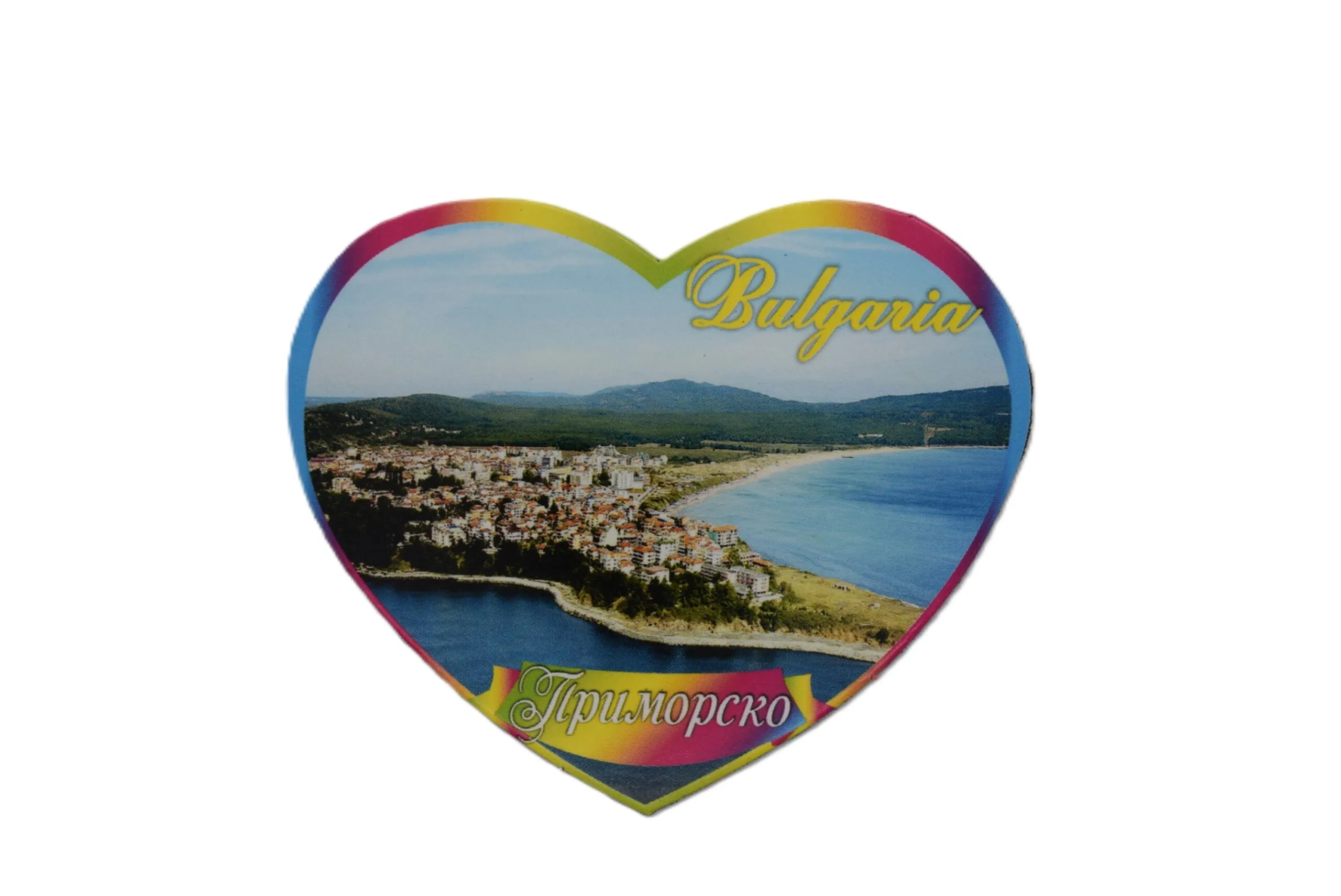 Сувенирен магнит със снимки от Приморско. Предлага се опакован в щендерен целофан.