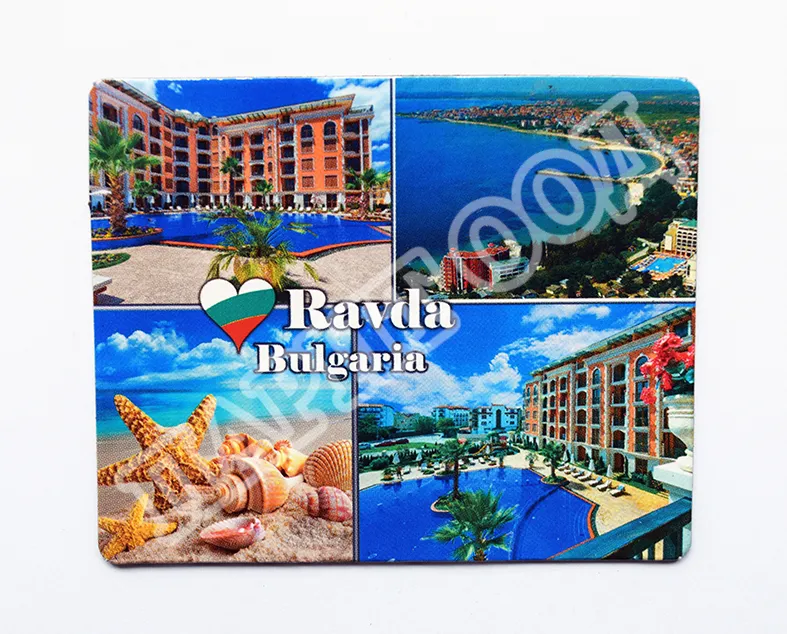 Сувенирен магнит със снимки от Равда. Предлага се опакован в щендерен целофан.