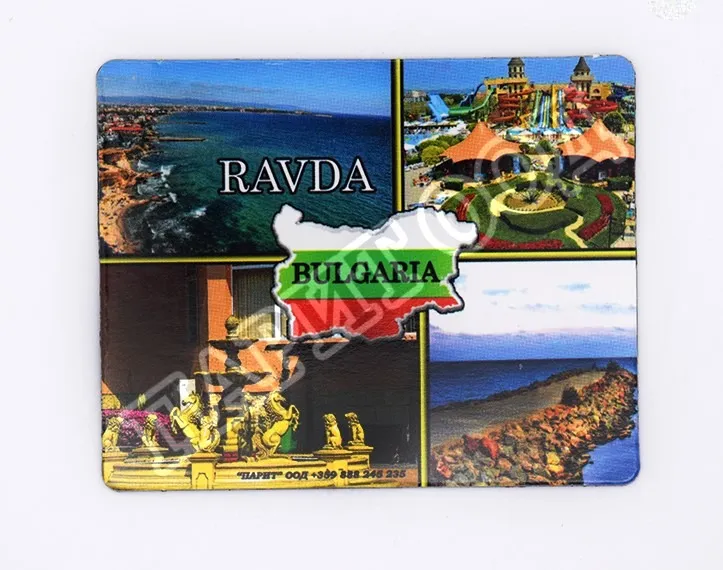Сувенирен магнит със снимки от Равда. Предлага се опакован в щендерен целофан.
