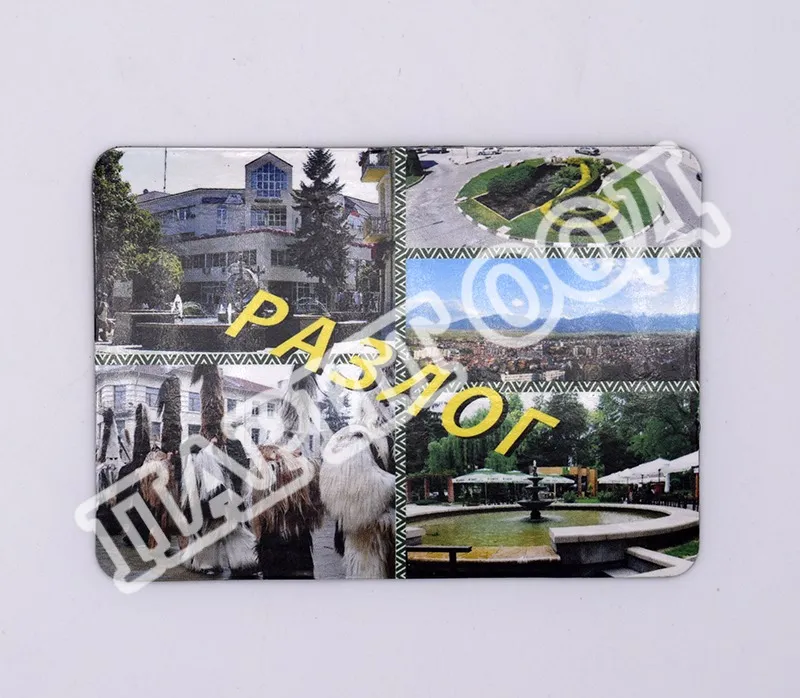 Сувенирен магнит със снимки от Разлог. Предлага се опакован в щендерен целофан.