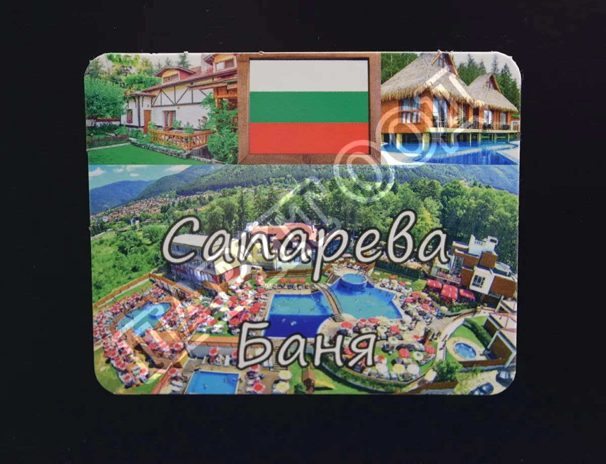 Сувенирен магнит със снимки от Сапарева баня. Предлага се опакован в щендерен целофан.