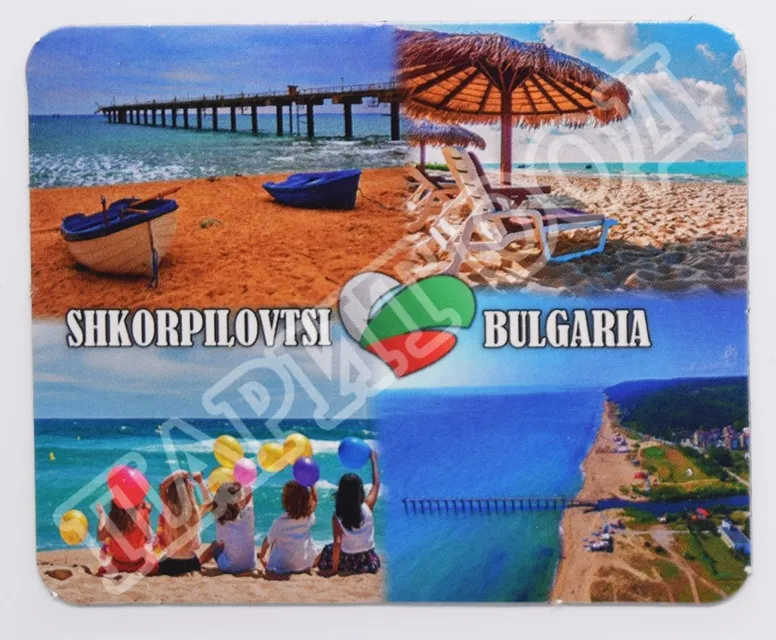 Сувенирен магнит със снимки от Шкорпиловци. Предлага се опакован в щендерен целофан.