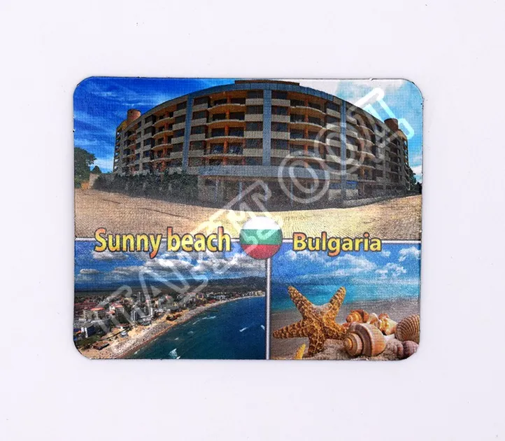 Сувенирен магнит със снимки от Слънчев бряг. Предлага се опакован в щендерен целофан.