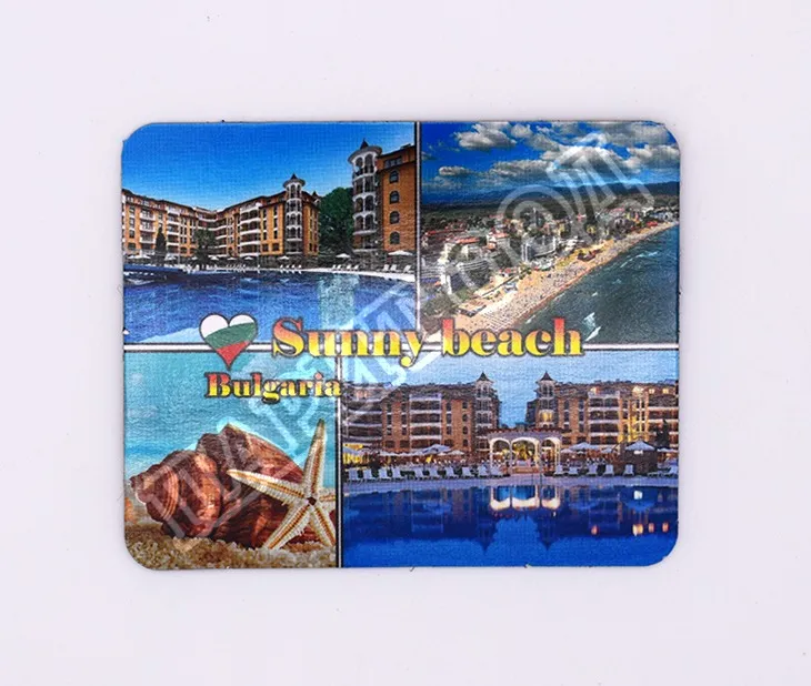 Сувенирен магнит със снимки от Слънчев бряг. Предлага се опакован в щендерен целофан.