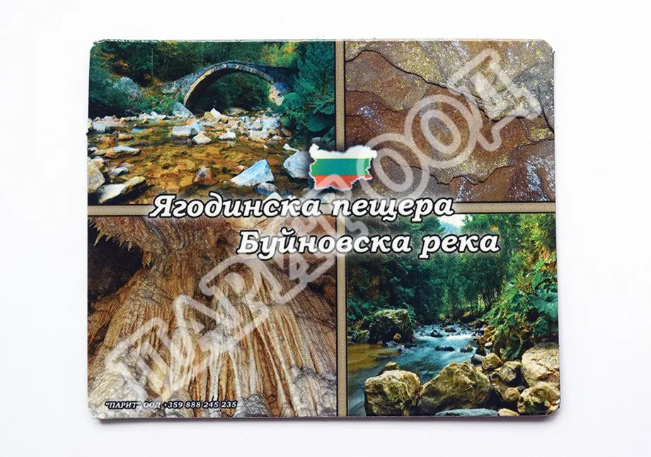 Сувенирен магнит със снимки от Ягодинска пещера, с. Ягодина. Предлага се опакован в щендерен целофан.