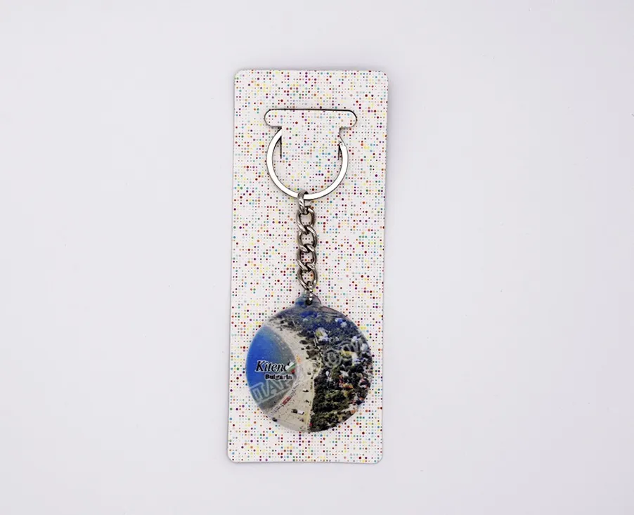 Метален ключодържател-отварачка със снимка от Китен. Предлага се опакован в щендерен целофан.