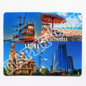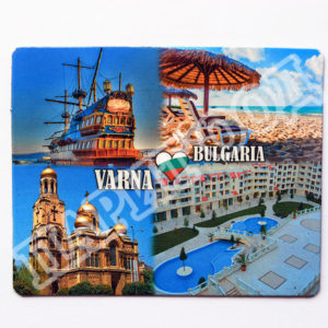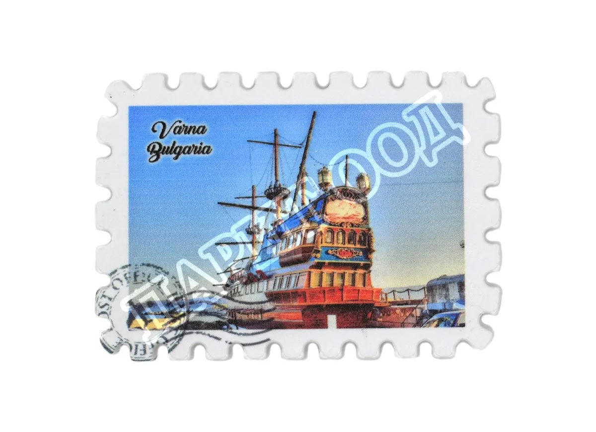 Сувенирна магнитна фигурка във форма на пощенска марка и със снимка от Варна. Предлага се опакована в щендерен целофан.