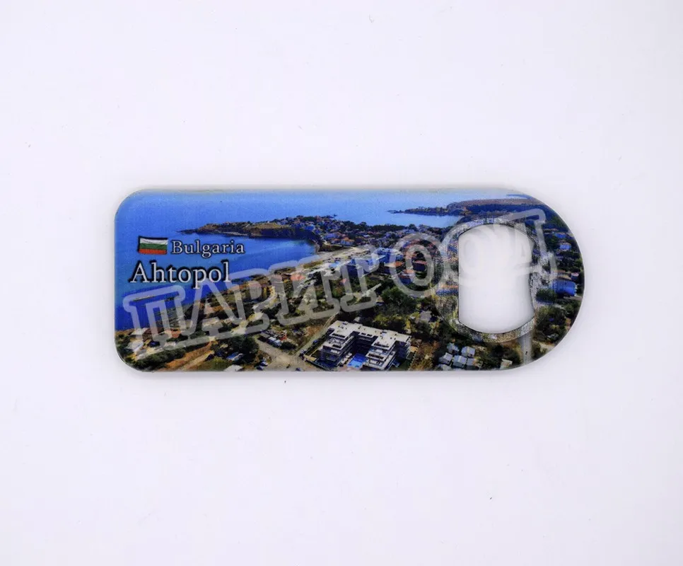 Сувенирна магнитна отварачка със снимка от Ахтопол. Предлага се опакована в щендерен целофан.