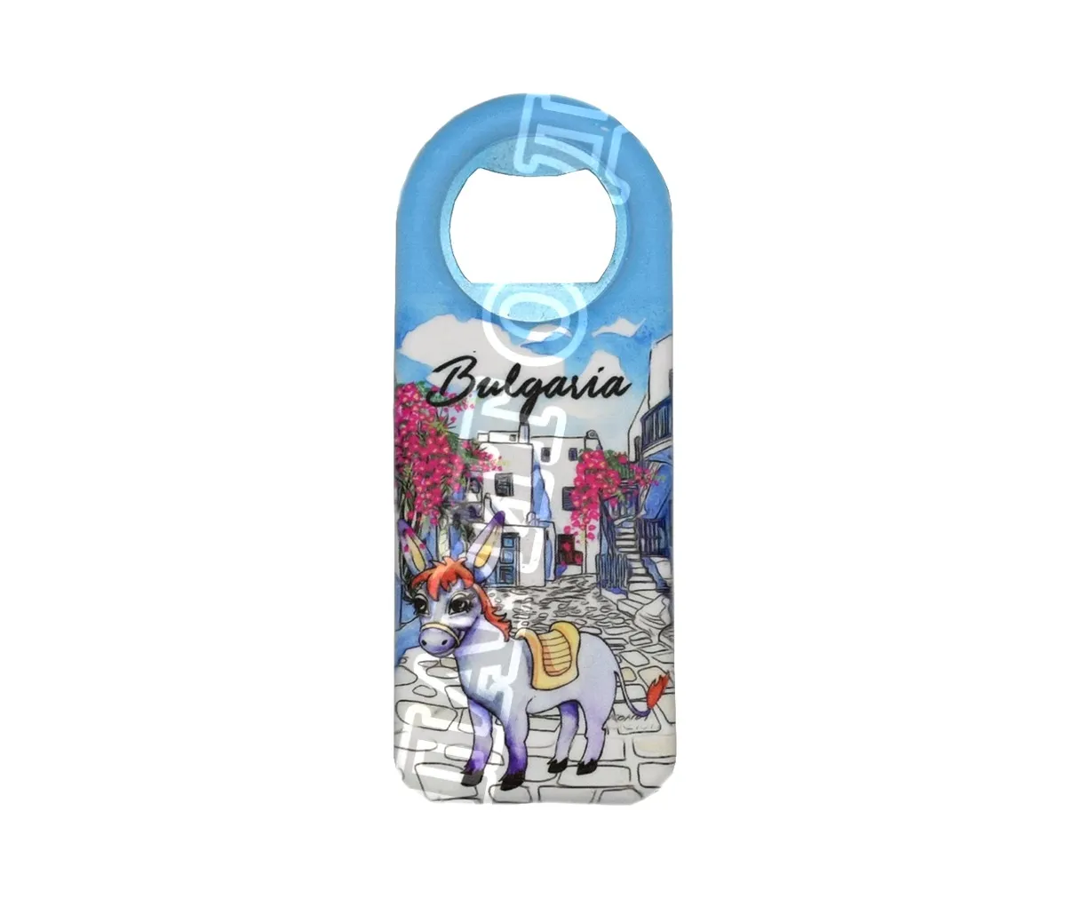 Сувенирна магнитна отварачка с изображение и надпис България. Предлага се опакована в щендерен целофан.