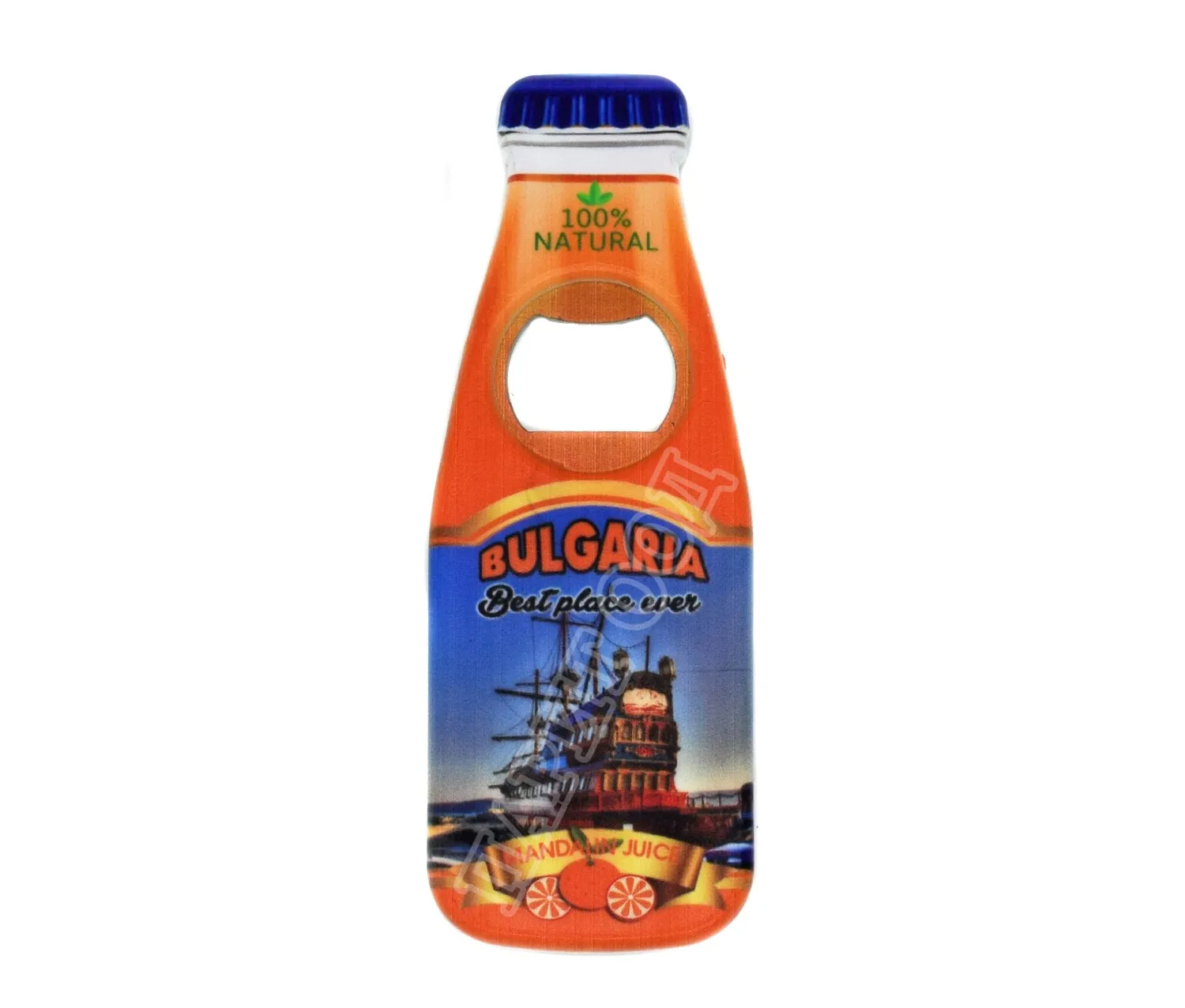 Сувенирна магнитна отварачка ”шише” със снимка. Предлага се опакована в щендерен целофан.