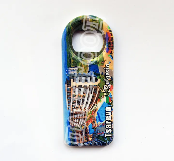 Сувенирна магнитна отварачка със снимка от Царево и надпис Царево, България. Предлага се опакована в щендерен целофан.