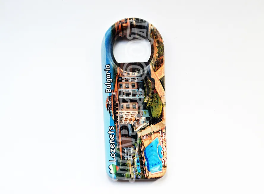 Сувенирна магнитна отварачка със снимка от ваканционно селище Лозенец и надпис Лозенец, България. Предлага се опакована в щендерен целофан.