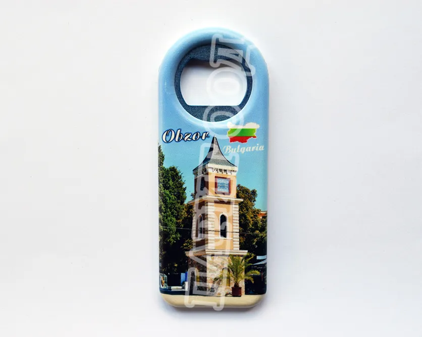 Сувенирна магнитна отварачка със снимка от Обзор и надпис Обзор, България. Предлага се опакована в щендерен целофан.