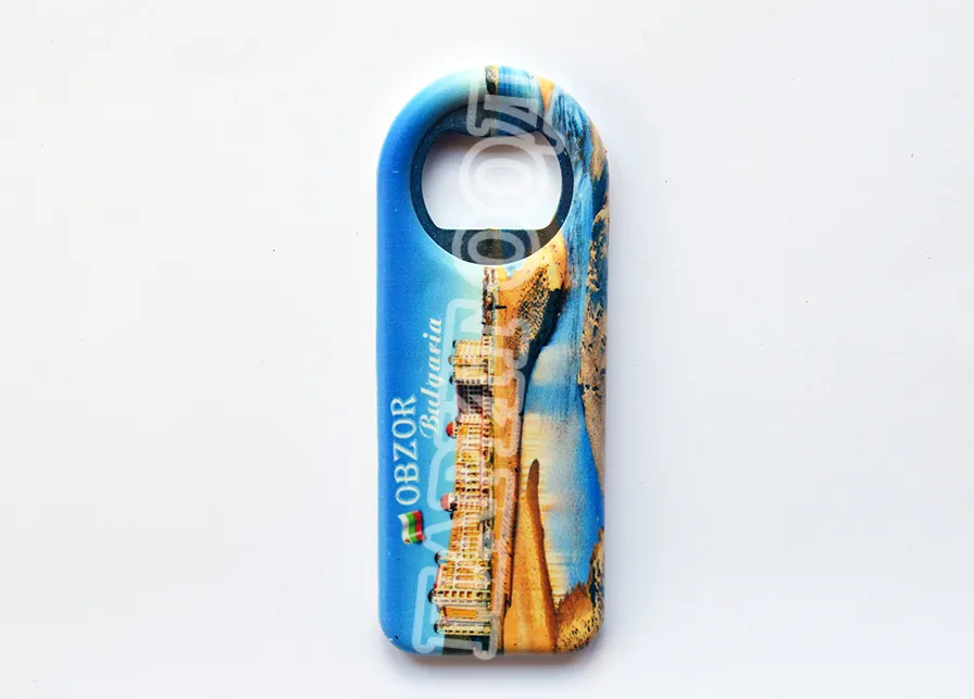 Сувенирна магнитна отварачка със снимка от Обзор и надпис Обзор, България. Предлага се опакована в щендерен целофан.