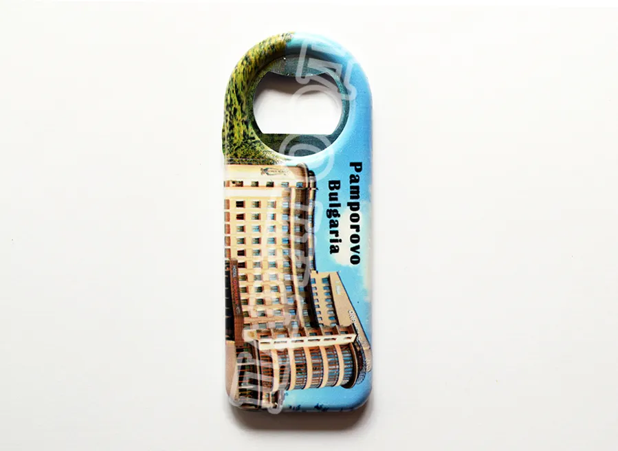 Сувенирна магнитна отварачка със снимка от Пампорово и надпис Пампорово, България. Предлага се опакована в щендерен целофан.
