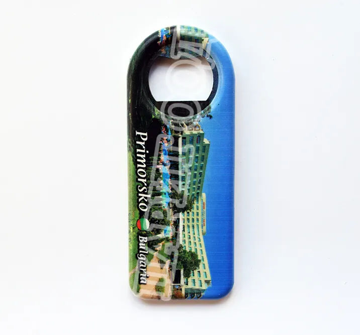 Сувенирна магнитна отварачка със снимка от Приморско и надпис Приморско, България. Предлага се опакована в щендерен целофан.