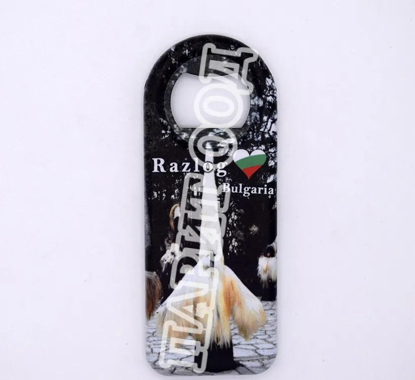 Сувенирна магнитна отварачка със снимка Разлог. Предлага се опакована в щендерен целофан.