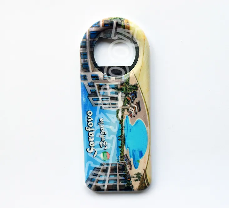 Сувенирна магнитна отварачка със снимка от Сарафово и надпис Сарафово, България. Предлага се опакована в щендерен целофан.