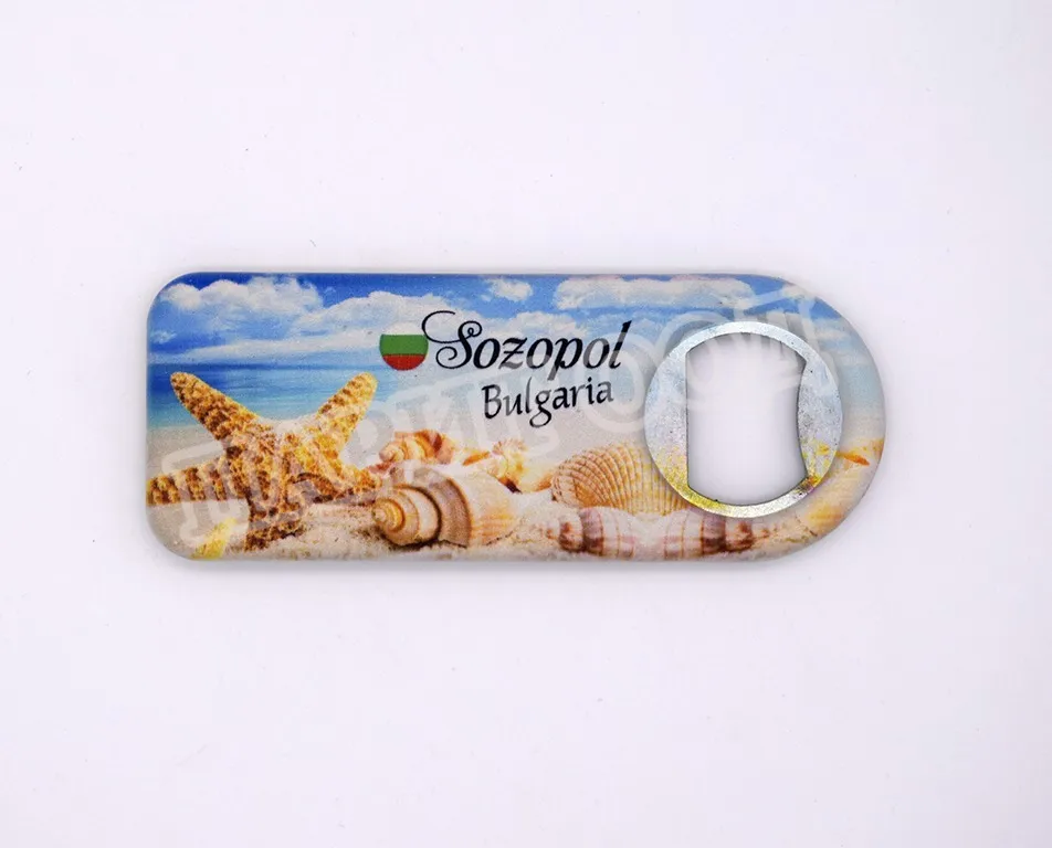 Сувенирна магнитна отварачка със снимка. Предлага се опакована в щендерен целофан.