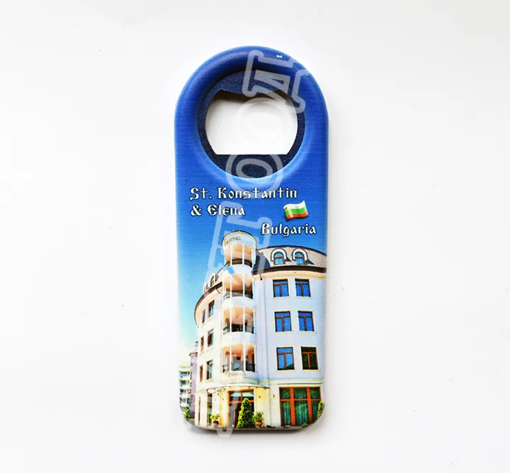 Сувенирна магнитна отварачка със снимка от к.к. Св. Константин и Елена и надпис Св. Константин и Елена, България. Предлага се опакована в щендерен целофан.