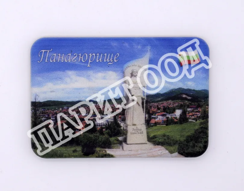 Сувенирна магнитна плочка със снимка от Панагюрище. Предлага се опакована в щендерен целофан.