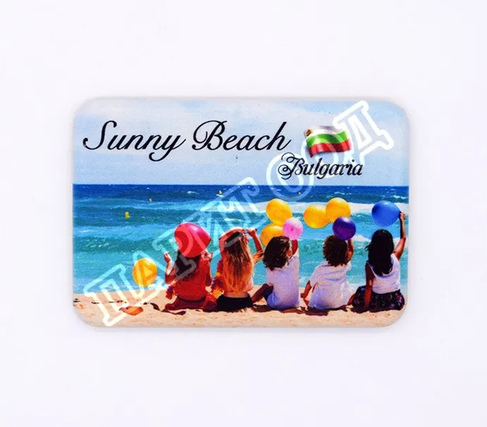 Сувенирна магнитна плочка с надпис Слънчев бряг. Предлага се опакована в щендерен целофан.