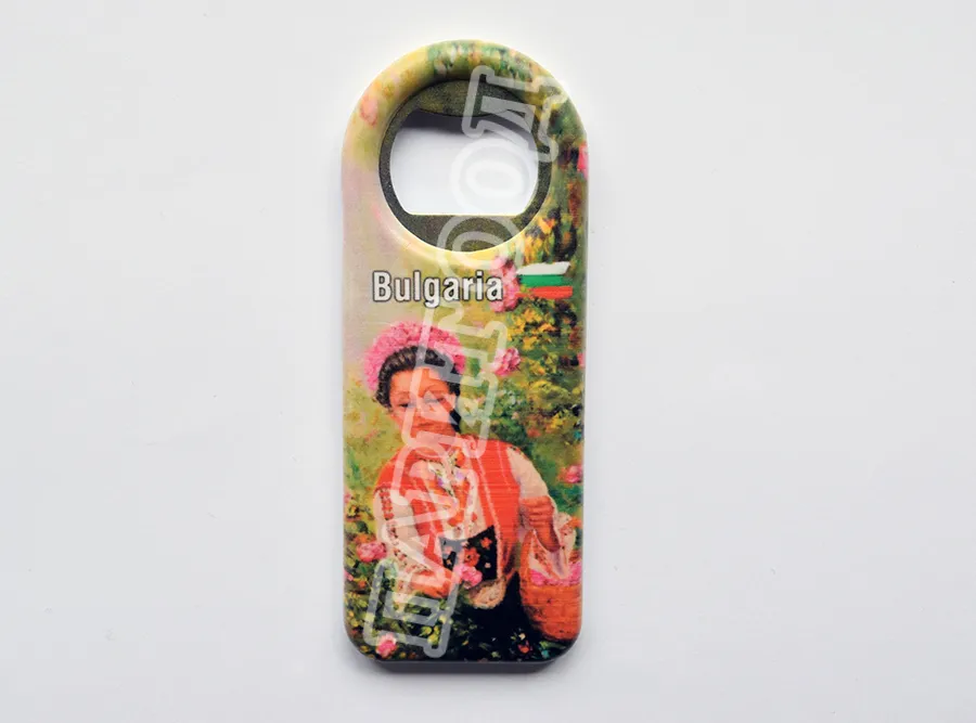 Сувенирна магнитна отварачка с изображение и надпис България. Предлага се опакована в щендерен целофан.